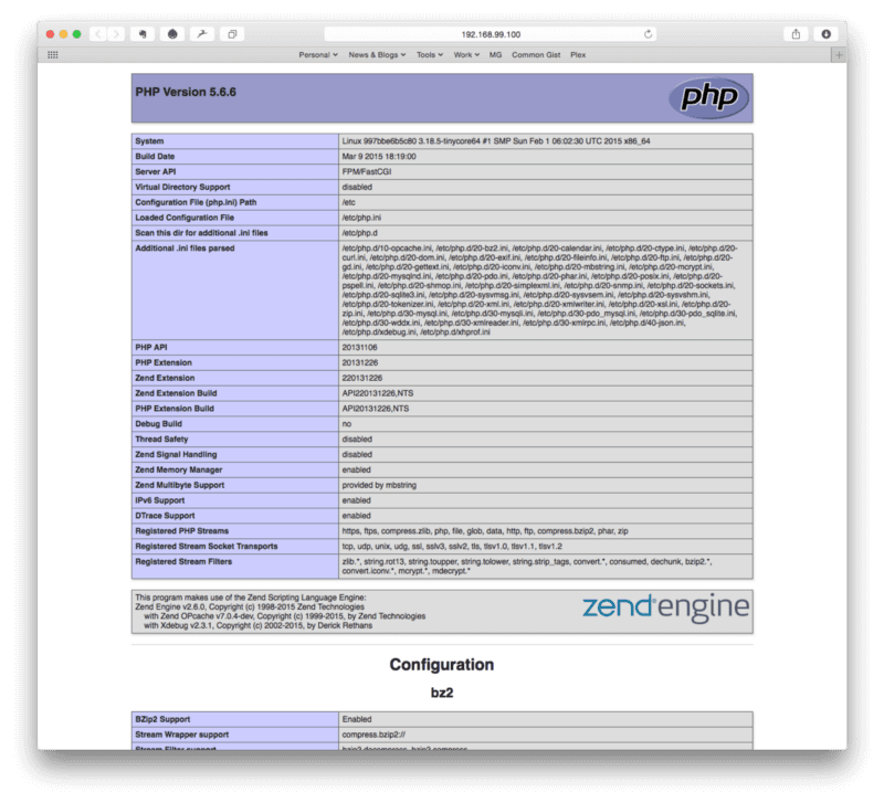 open http://$(docker-machine ip)In my example I see a phpinfo() page.
