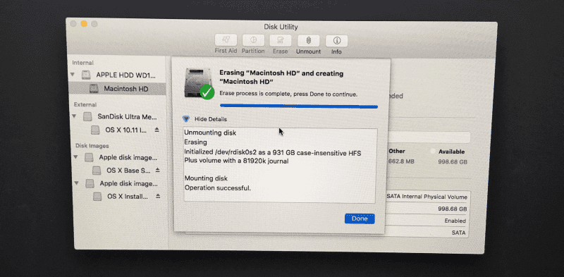 First thing to do is build a USB install disk so that , to do this I use DiskMaker X. Once the drive has been created I boot from it, erase “Macintosh HD” and then do the installation.
