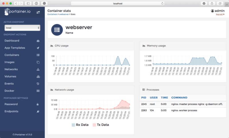 Clicking on Stats will show you a real-time breakdown of what is happening within your container;