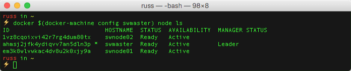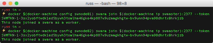 docker $(docker-machine config swnode01) swarm join $(docker-machine ip swmaster):2377 --token SWMTKN-1-3sx2yobftwdk1ed5bywh3tomlhm46gke4kp887w9uzmmgkhgtw-bv9unn94pva98dhrtx0hrkjzb