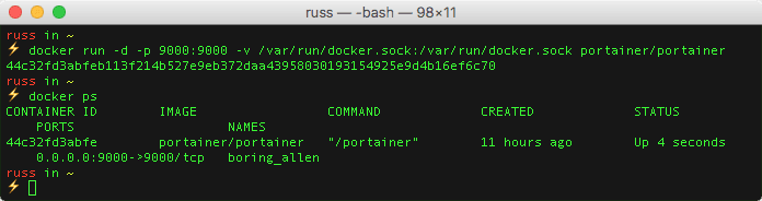 docker run -d -p 9000:9000 -v /var/run/docker.sock:/var/run/docker.sock portainer/portainer