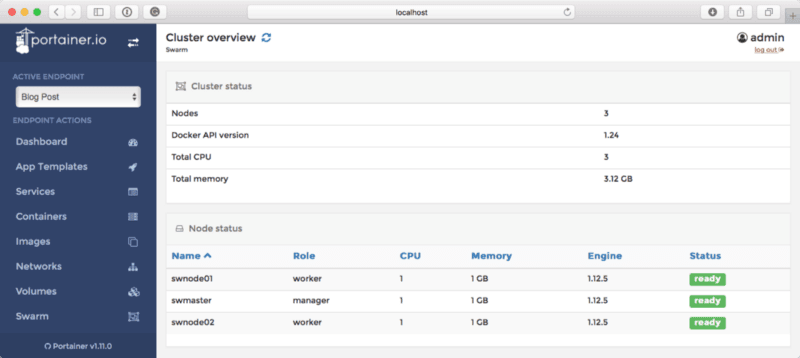 Now let’s see what happens when we attach Portainer to a Docker Swarm cluster (running in Swarm mode and not the legacy standalone cluster).