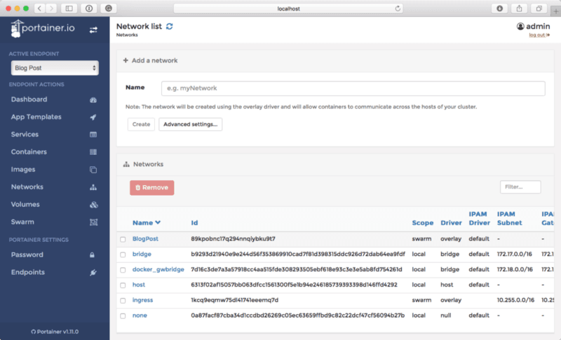 You can also add launch services by clicking Services. Before we launch a service we should create a network for our Service to launched into, click on Networks and then Create a network, I called mine “BlogPost”;