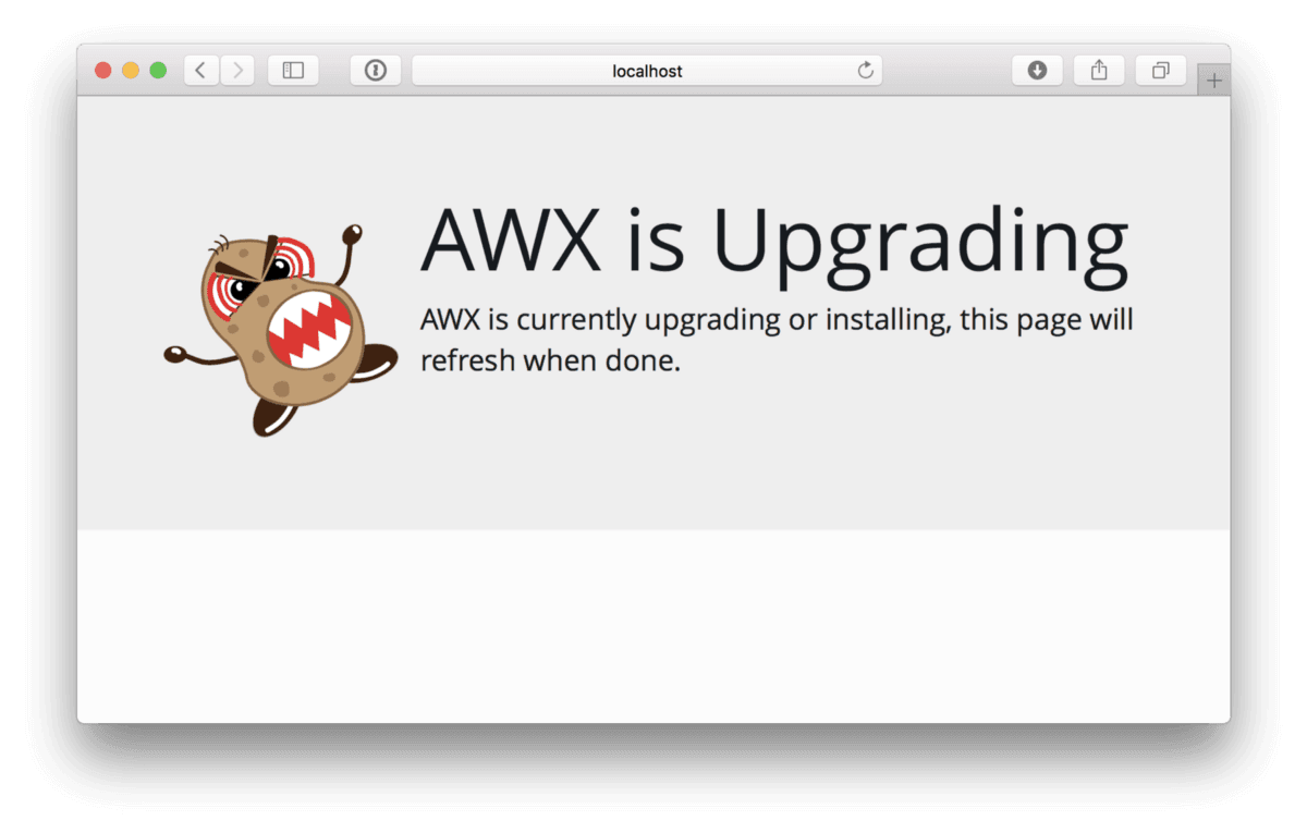 - name: install awx command: "ansible-playbook -i inventory install.yml" args: chdir: "~/awx/installer"(You can find the files above in a gist on GitHub) Running vagrant up will launch the CentOS 7 machine and execute the playbook to install AWX, this process takes about 15 minutes.