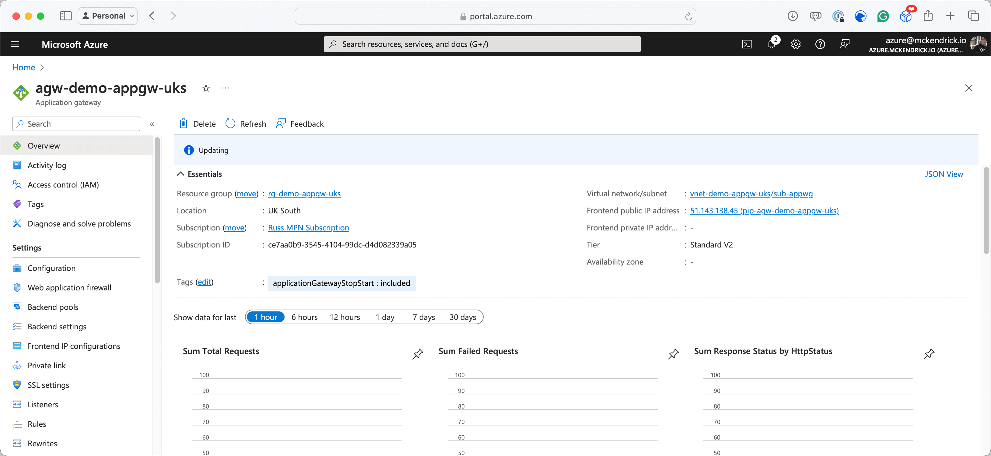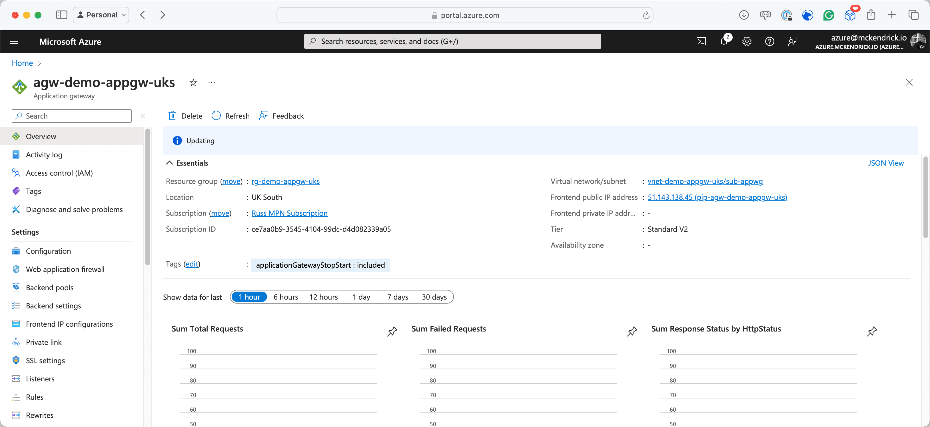At this point, if you are testing, you should terminate the Azure Application Gateway so you don’t end up getting an unexpected cost (even with the Azure Logic App in place it’s not cheap 😃)
