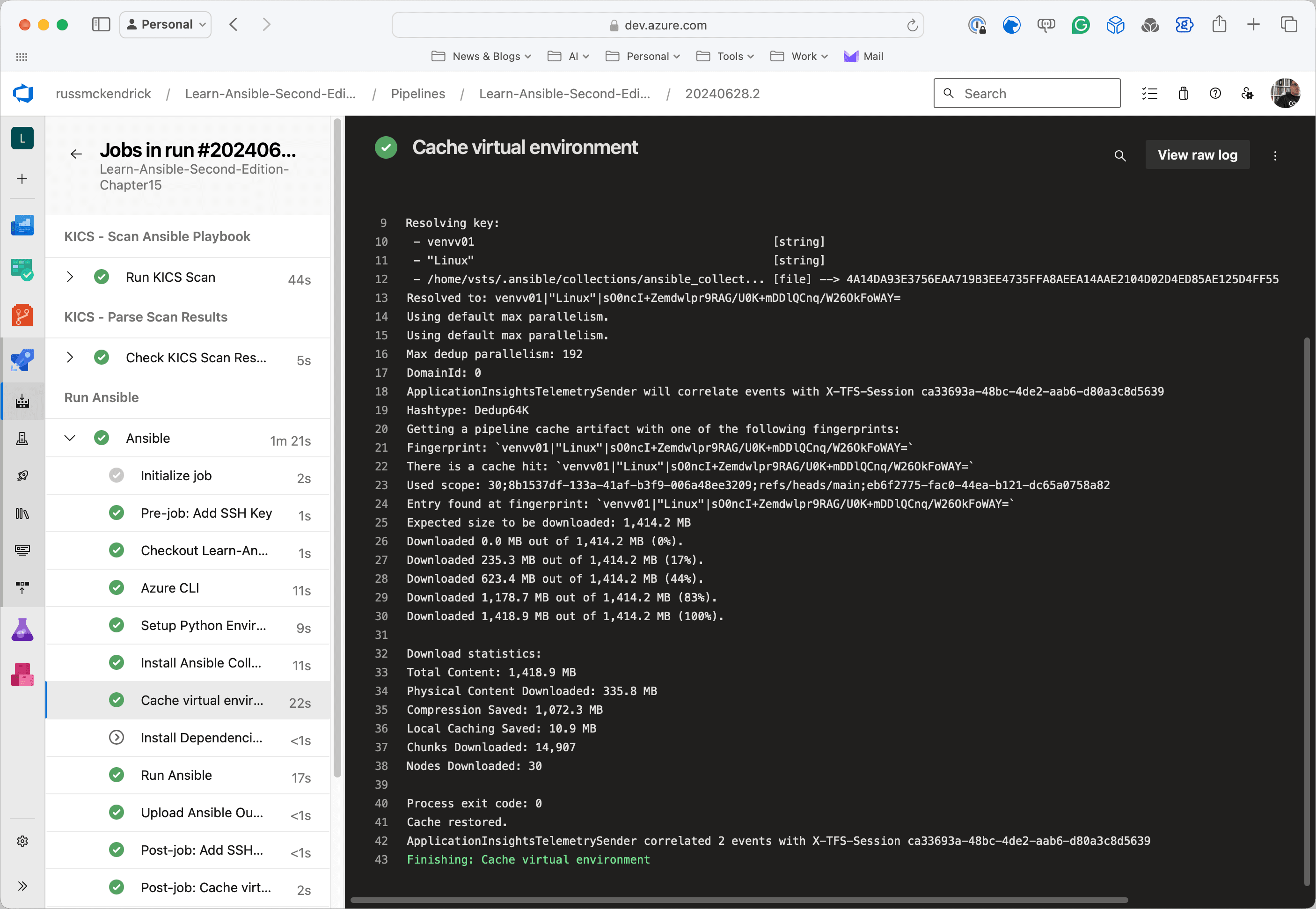 The introduction of caching in our Azure DevOps Ansible pipeline has significantly improved its efficiency and reduced execution time. By implementing the Cache@2