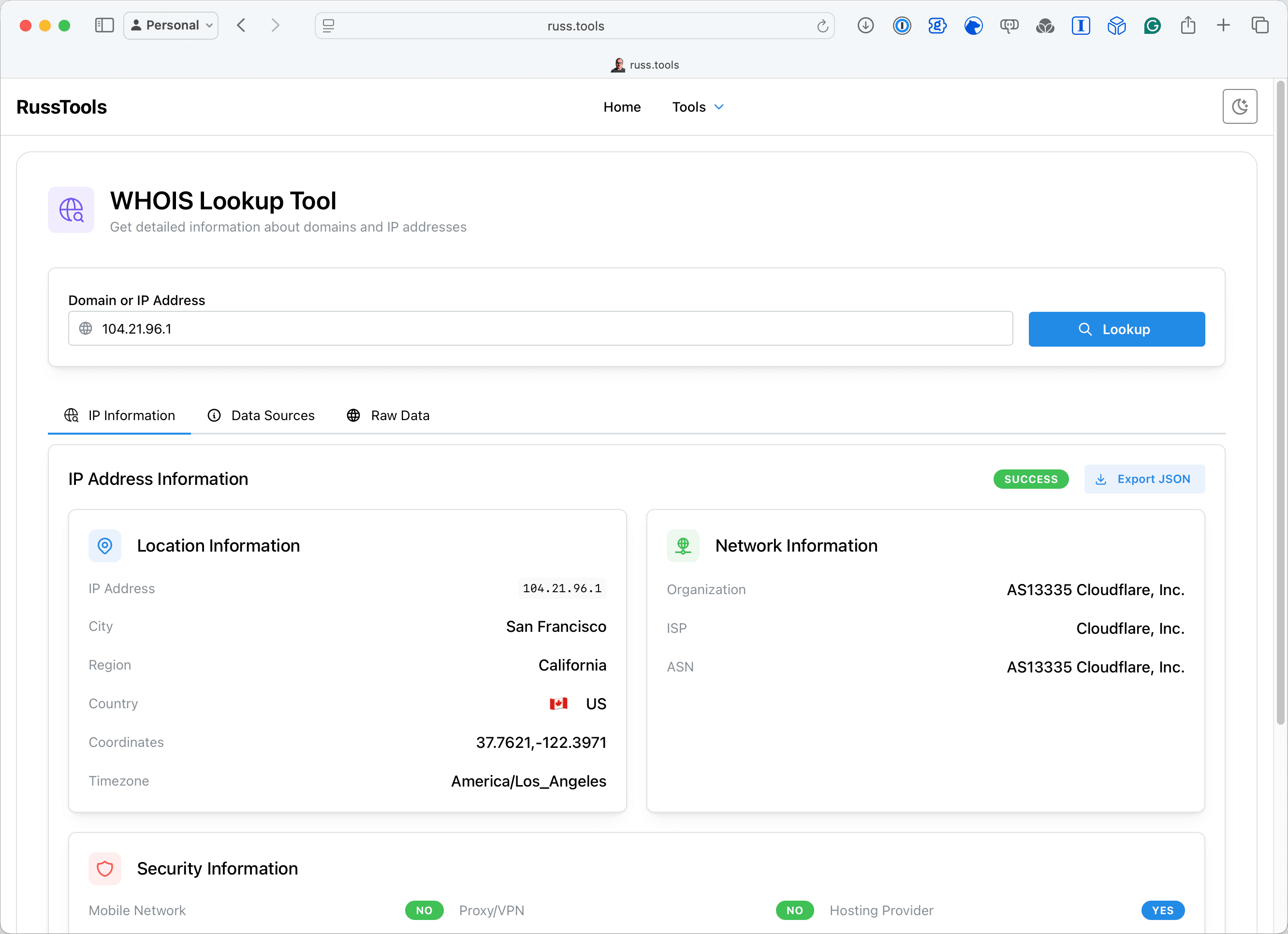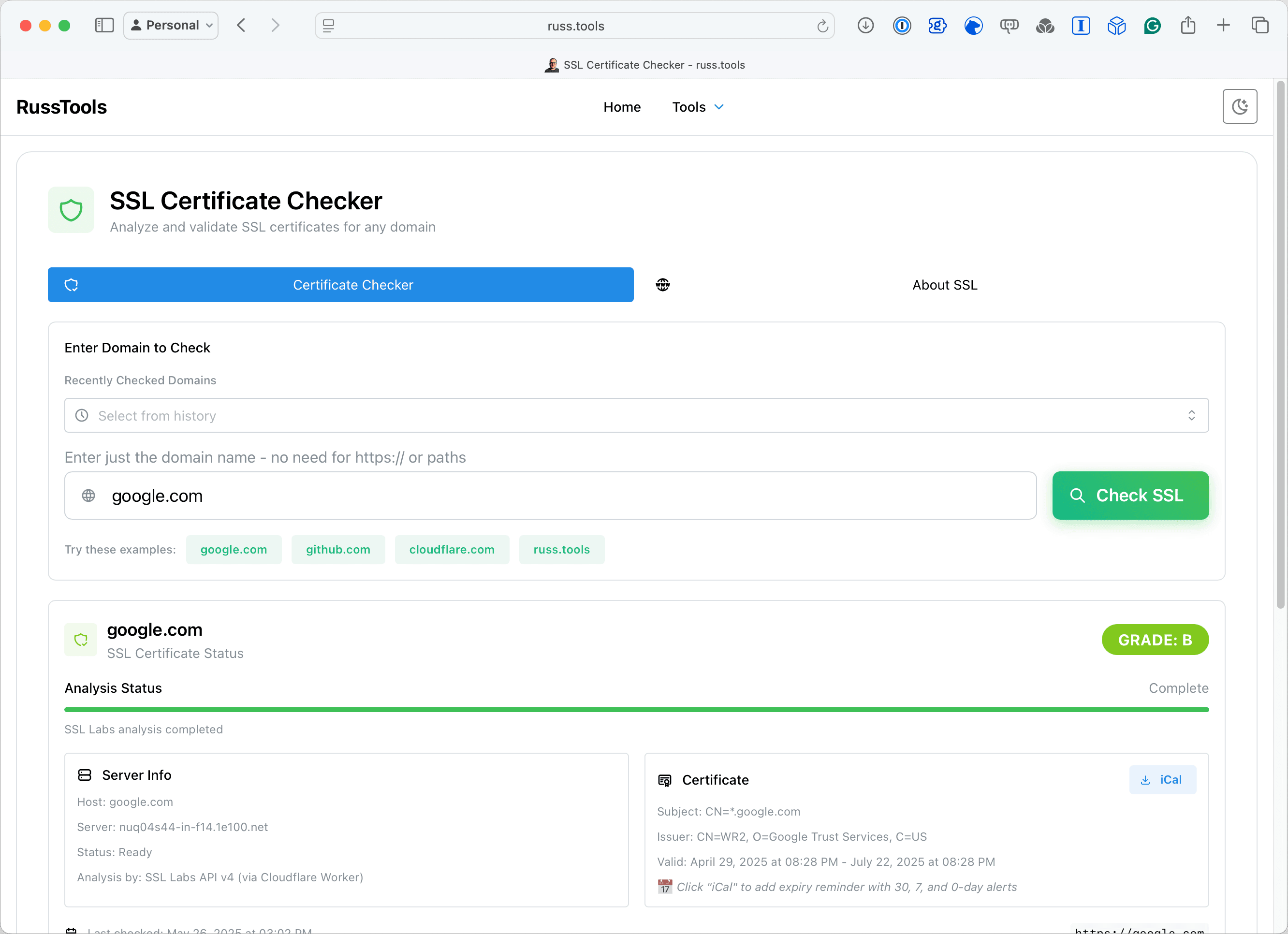 Colour me impressed - so with a long weekend I decided to add some more tools: first an SSL Certificate Checker, then a DNS Lookup Tool, and then a WHOIS Lookup Tool.