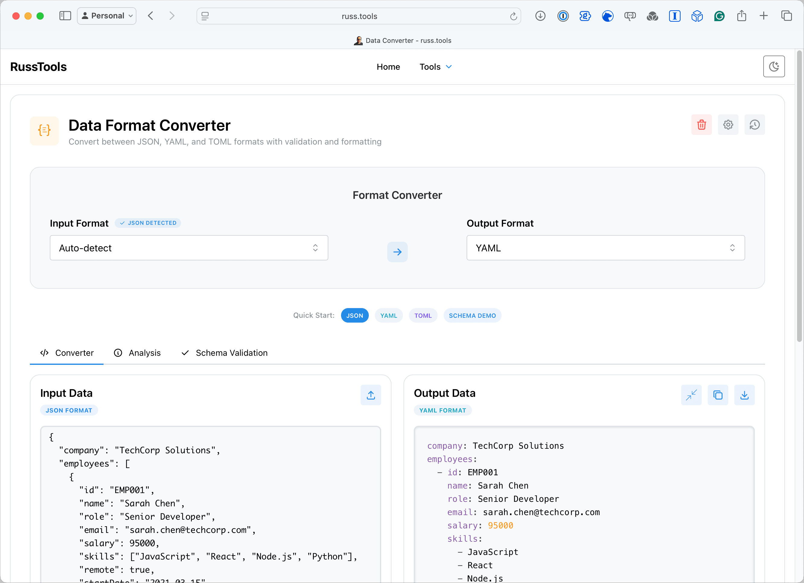 - Data Format Converter; Convert between JSON, YAML, and TOML formats with validation and formatting