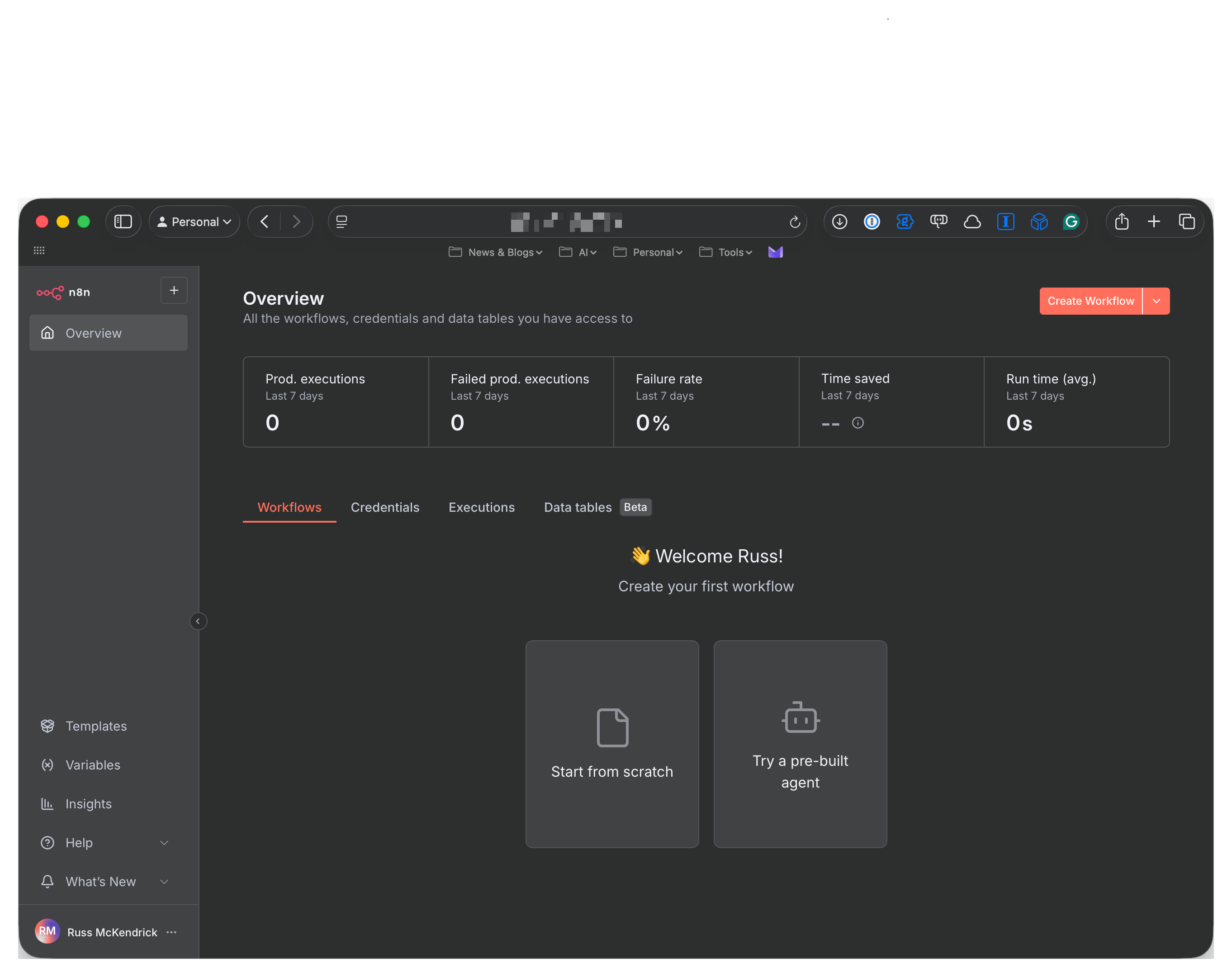 Once configured and goto your n8n domain you should be prompted to login with Cloudflare, once you have done this you will be taken to the n8n editor: