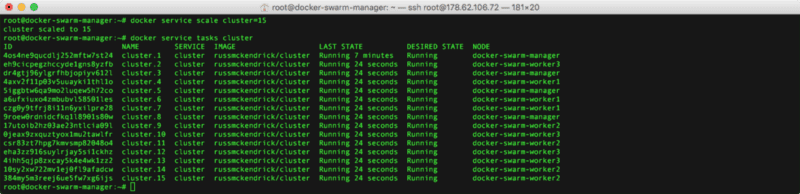 docker service create — name cluster — replicas 3 -p:80:80/tcp — network clusternetwork russmckendrick/cluster