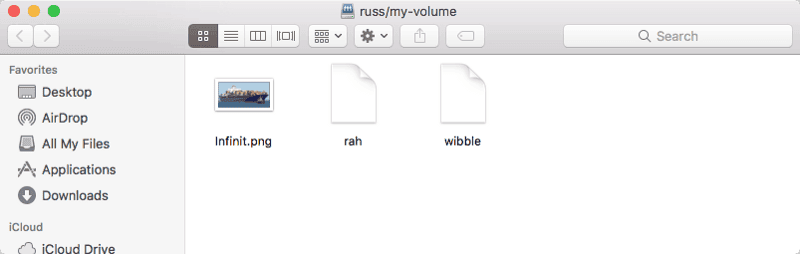 docker run -it --rm --volume-driver infinit -v russ/my-volume:/mnt alpine ashand check the contents of /mnt by running;