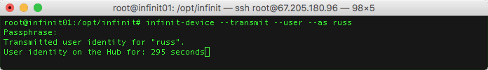 infinit-device --receive --user --name russNow the key is installed we can join the overlay network by running;