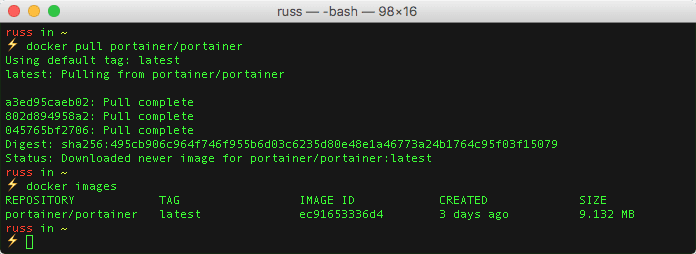 Now we have the image pulled; we can launch the container. As with any container which needs to access the Docker daemon on the host machine, we need to mount the socket file from the host within the container so to run Portainer we need to run the following command;