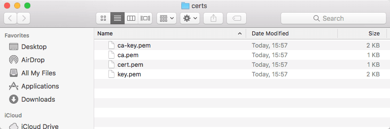 This will open a finder window with the certificates you will need to upload to Portainer;