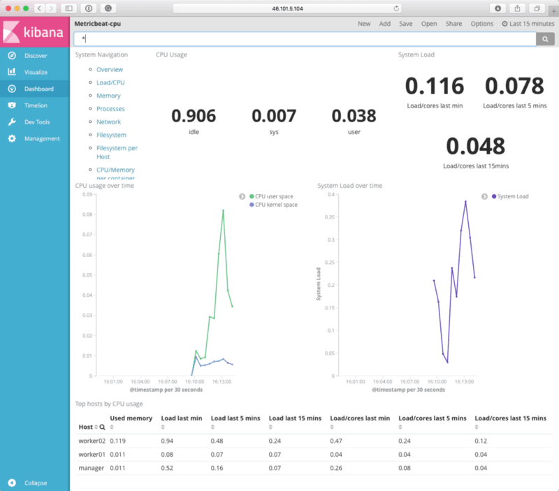 As I needed somewhere to send my metrics to I decided to use Docker Machine (Docker again, now there is a surprise) to launch three Docker hosts in DigitalOcean, configure a Swarm and then create an Elasticsearch & Kibana service.