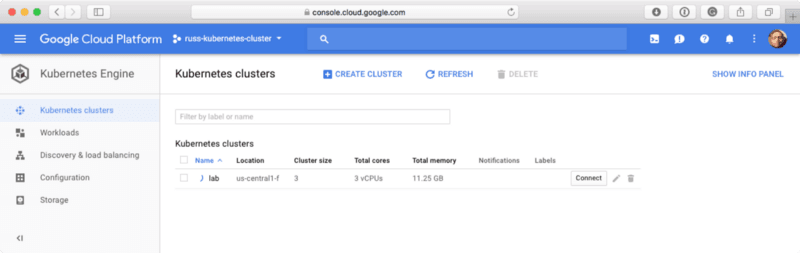 You can double check the Google Clound Console to see the status of your cluster, as you can see from the screen below the lab was launching;