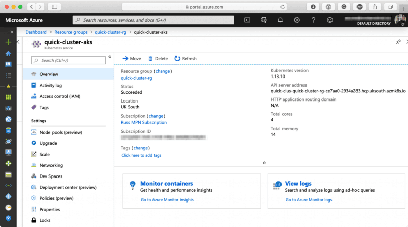 As I have access to an Azure Subscription and Microsoft have made the process of launching a cluster quite a painless experience I thought it would make sense to write a quick blog post to cover launching, configuring and tearing down an Azure AKS Cluster.