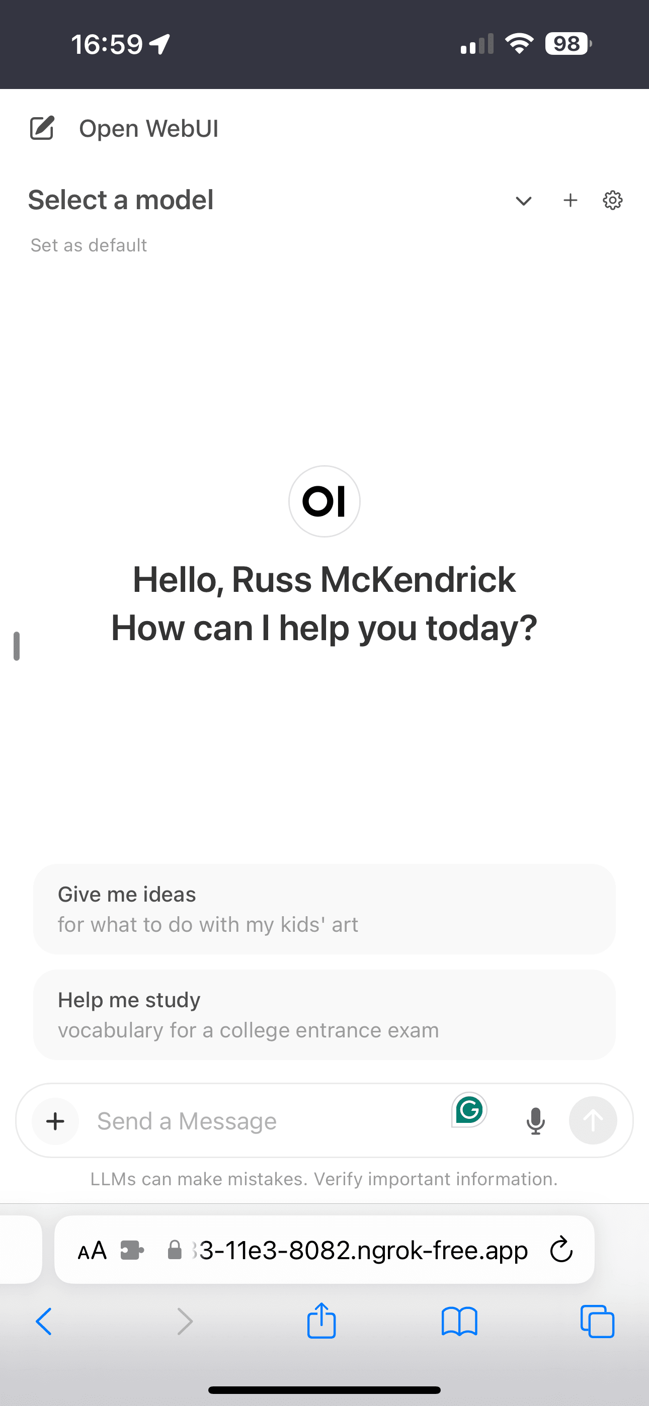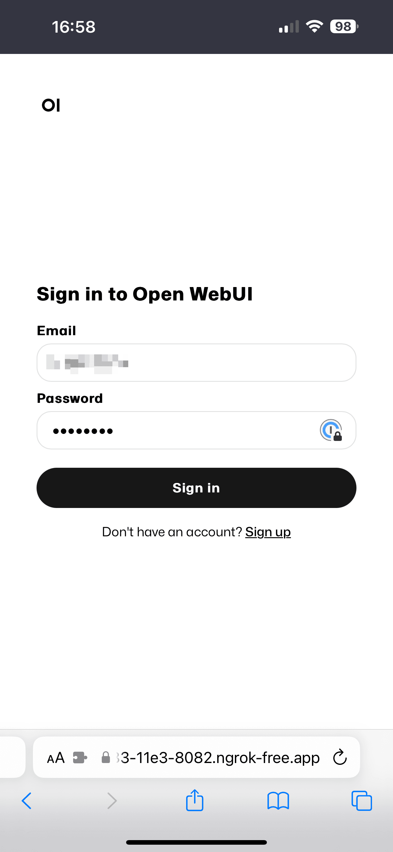 The Open WebUI interface also works well in a mobile browser, so let’s use ngrok to open a tunnel from our local machine to the internet so we can access it - to do this, sign up for an ngrok account at their site - the service is described as: