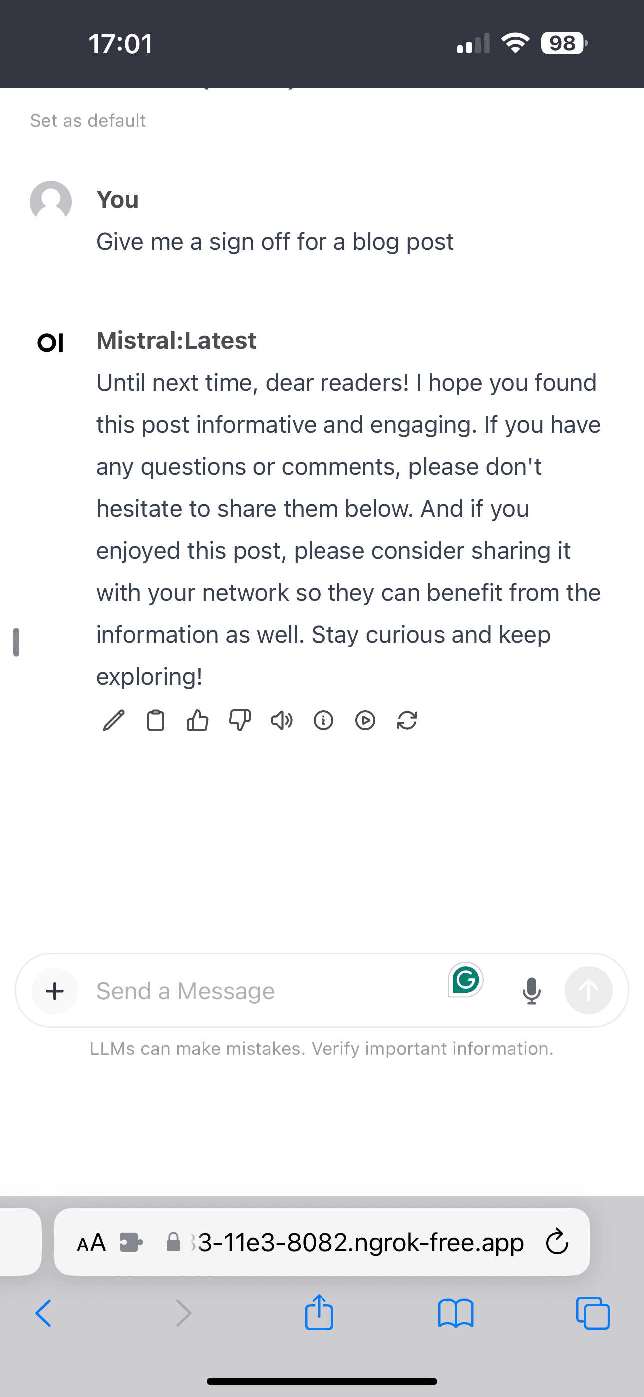 In this post, we explored how to run powerful large language models like llama2, Mistral, and codellama entirely locally on macOS using the Ollama tool. We saw how easy it is to pull models, interact with them via a chat interface and API, run a feature-rich web UI, and even access the models remotely using ngrok.