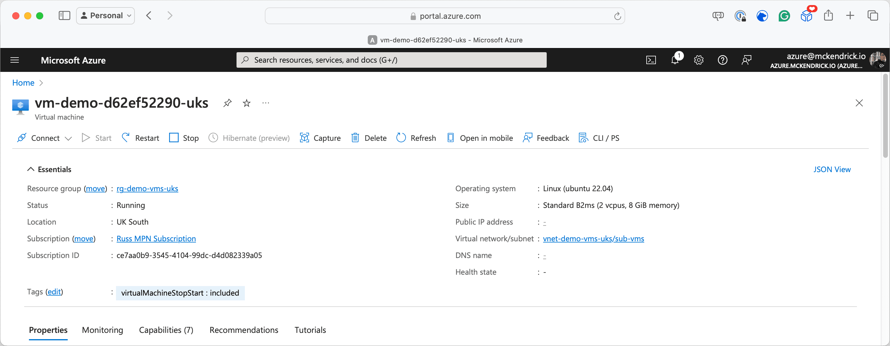 /subscriptions/ce7aa0b9-3545-4104-99dc-d4d082339a05/resourceGroups/rg-demo-vms-uks/providers/Microsoft.Compute/virtualMachines/vm-demo-e8ab6db95a-uksWhich returns the following output: