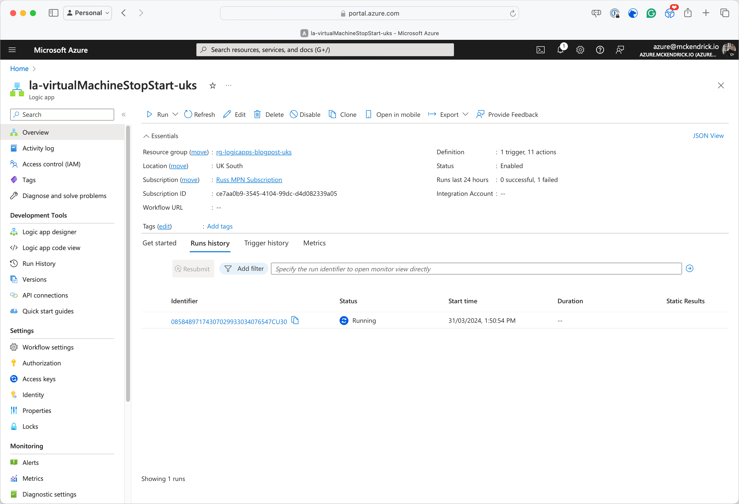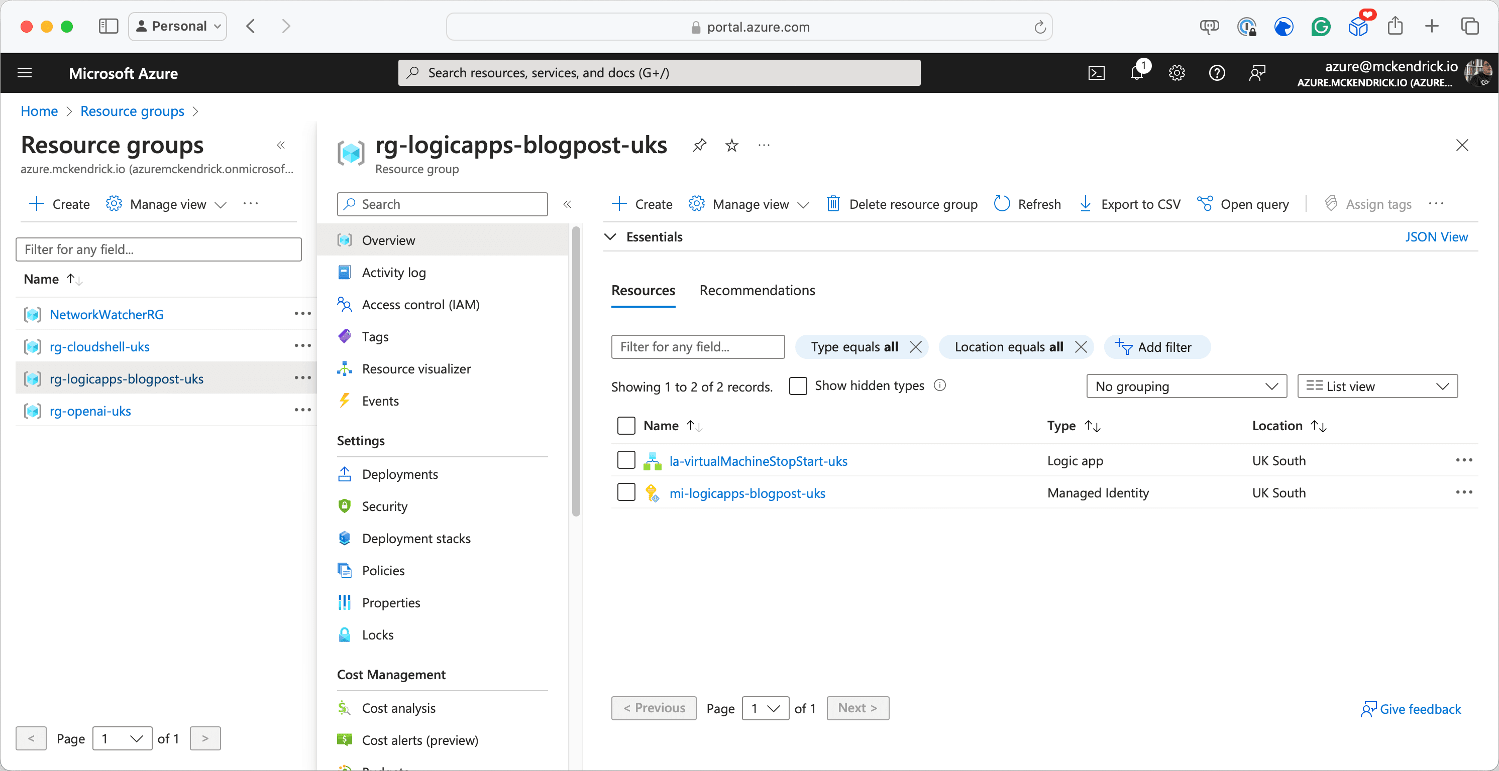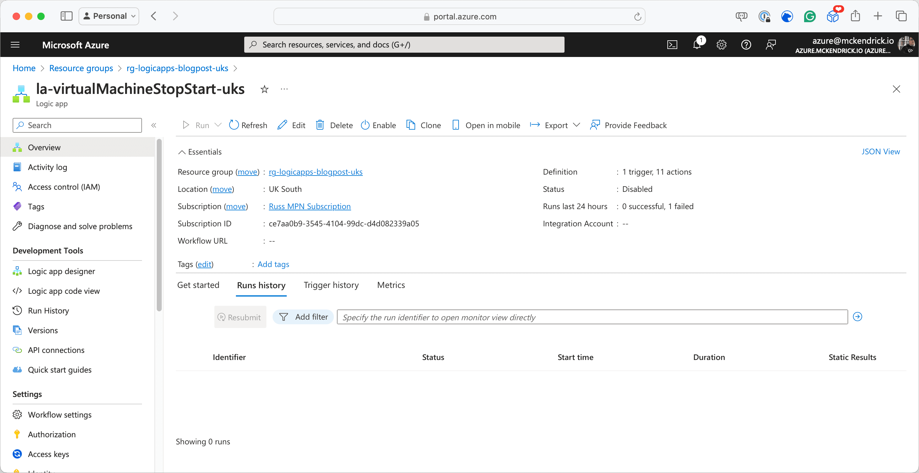 export RESOURCE_GROUP_NAME="rg-demo-vms-uks"az group delete --name $RESOURCE_GROUP_NAMEWorking through the Azure Logic App