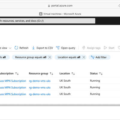 { "value": [ { "id": "/subscriptions/ce7aa0b9-3545-4104-99dc-d4d082339a05/resourceGroups/RG-DEMO-VMS-UKS/providers/Microsoft.Compute/disks/vm-demo-d62ef52290-uks_OsDisk_1_23c583676cb8413c9ac875058f5c1f30", "name": "vm-demo-d62ef52290-uks_OsDisk_1_23c583676cb8413c9ac875058f5c1f30", "type": "Microsoft.Compute/disks", "sku": { "name": "Premium_LRS", "tier": "Premium" }, "kind": "", "managedBy": "/subscriptions/ce7aa0b9-3545-4104-99dc-d4d082339a05/resourceGroups/rg-demo-vms-uks/providers/Microsoft.Compute/virtualMachines/vm-demo-d62ef52290-uks", "location": "uksouth", "tags": { "virtualMachineStopStart": "included" } }, { "id": "/subscriptions/ce7aa0b9-3545-4104-99dc-d4d082339a05/resourceGroups/RG-DEMO-VMS-UKS/providers/Microsoft.Compute/disks/vm-demo-e8ab6db95a-uks_OsDisk_1_5be3d505ec324ef3a411406f24e13bf2", "name": "vm-demo-e8ab6db95a-uks_OsDisk_1_5be3d505ec324ef3a411406f24e13bf2", "type": "Microsoft.Compute/disks", "sku": { "name": "Premium_LRS", "tier": "Premium" }, "kind": "", "managedBy": "/subscriptions/ce7aa0b9-3545-4104-99dc-d4d082339a05/resourceGroups/rg-demo-vms-uks/providers/Microsoft.Compute/virtualMachines/vm-demo-e8ab6db95a-uks", "location": "uksouth", "tags": { "virtualMachineStopStart": "included" } }, { "id": "/subscriptions/ce7aa0b9-3545-4104-99dc-d4d082339a05/resourceGroups/rg-demo-vms-uks/providers/Microsoft.Compute/virtualMachines/vm-demo-d62ef52290-uks", "name": "vm-demo-d62ef52290-uks", "type": "Microsoft.Compute/virtualMachines", "kind": "", "managedBy": "", "location": "uksouth", "tags": { "virtualMachineStopStart": "included" } }, { "id": "/subscriptions/ce7aa0b9-3545-4104-99dc-d4d082339a05/resourceGroups/rg-demo-vms-uks/providers/Microsoft.Compute/virtualMachines/vm-demo-e8ab6db95a-uks", "name": "vm-demo-e8ab6db95a-uks", "type": "Microsoft.Compute/virtualMachines", "kind": "", "managedBy": "", "location": "uksouth", "tags": { "virtualMachineStopStart": "included" } }, { "id": "/subscriptions/ce7aa0b9-3545-4104-99dc-d4d082339a05/resourceGroups/rg-demo-vms-uks/providers/Microsoft.Network/networkInterfaces/vm-demo-d62ef52290-uksVMNic", "name": "vm-demo-d62ef52290-uksVMNic", "type": "Microsoft.Network/networkInterfaces", "kind": "Regular", "managedBy": "", "location": "uksouth", "tags": { "virtualMachineStopStart": "included" } }, { "id": "/subscriptions/ce7aa0b9-3545-4104-99dc-d4d082339a05/resourceGroups/rg-demo-vms-uks/providers/Microsoft.Network/networkInterfaces/vm-demo-e8ab6db95a-uksVMNic", "name": "vm-demo-e8ab6db95a-uksVMNic", "type": "Microsoft.Network/networkInterfaces", "kind": "Regular", "managedBy": "", "location": "uksouth", "tags": { "virtualMachineStopStart": "included" } }, { "id": "/subscriptions/ce7aa0b9-3545-4104-99dc-d4d082339a05/resourceGroups/rg-demo-vms-uks/providers/Microsoft.Network/networkSecurityGroups/vm-demo-d62ef52290-uksNSG", "name": "vm-demo-d62ef52290-uksNSG", "type": "Microsoft.Network/networkSecurityGroups", "kind": "", "managedBy": "", "location": "uksouth", "tags": { "virtualMachineStopStart": "included" } }, { "id": "/subscriptions/ce7aa0b9-3545-4104-99dc-d4d082339a05/resourceGroups/rg-demo-vms-uks/providers/Microsoft.Network/networkSecurityGroups/vm-demo-e8ab6db95a-uksNSG", "name": "vm-demo-e8ab6db95a-uksNSG", "type": "Microsoft.Network/networkSecurityGroups", "kind": "", "managedBy": "", "location": "uksouth", "tags": { "virtualMachineStopStart": "included" } } ]}Filter everything but the VMs we are managing (Azure Virtual Machine)