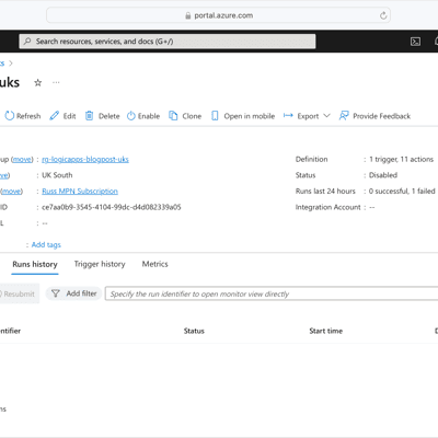 export RESOURCE_GROUP_NAME="rg-demo-appgw-uks"az group delete --name $RESOURCE_GROUP_NAMEWorking through the Azure Logic App