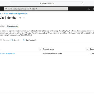 az role assignment create \ --assignee-principal-type "ServicePrincipal" \ --assignee-object "$(az identity show --resource-group $RESOURCE_GROUP_NAME --name $MANAGED_ID_NAME --query principalId --output tsv)" \ --role "Virtual Machine Contributor" \ --scope "/subscriptions/$SUBSCRIPTION_ID"With the User Managed Identity in place, we can now create the Azure Logic App.