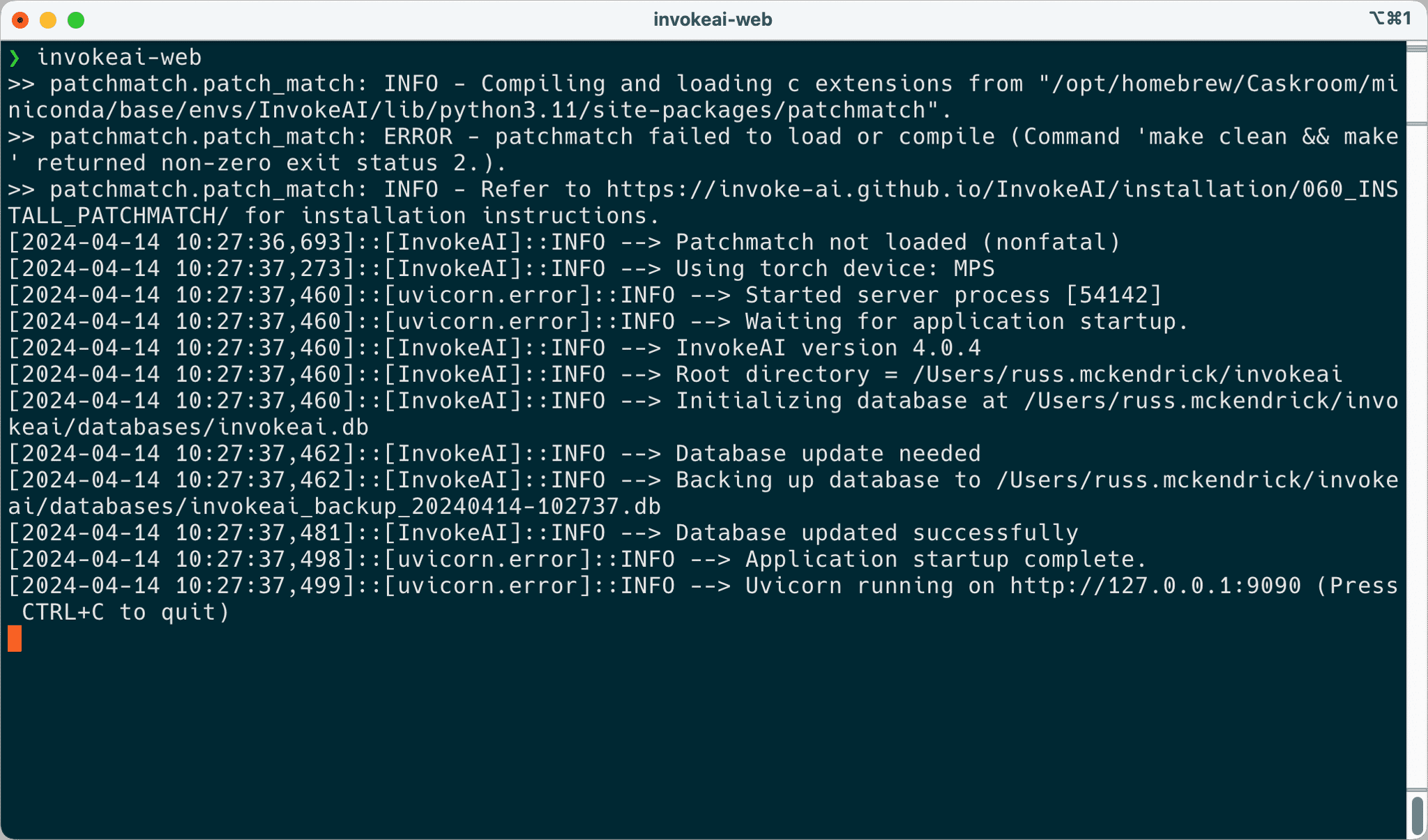 conda activate InvokeAIinvokeai-webReturning to http://127.0.0.1:9090/ will let you pick up where you left off.