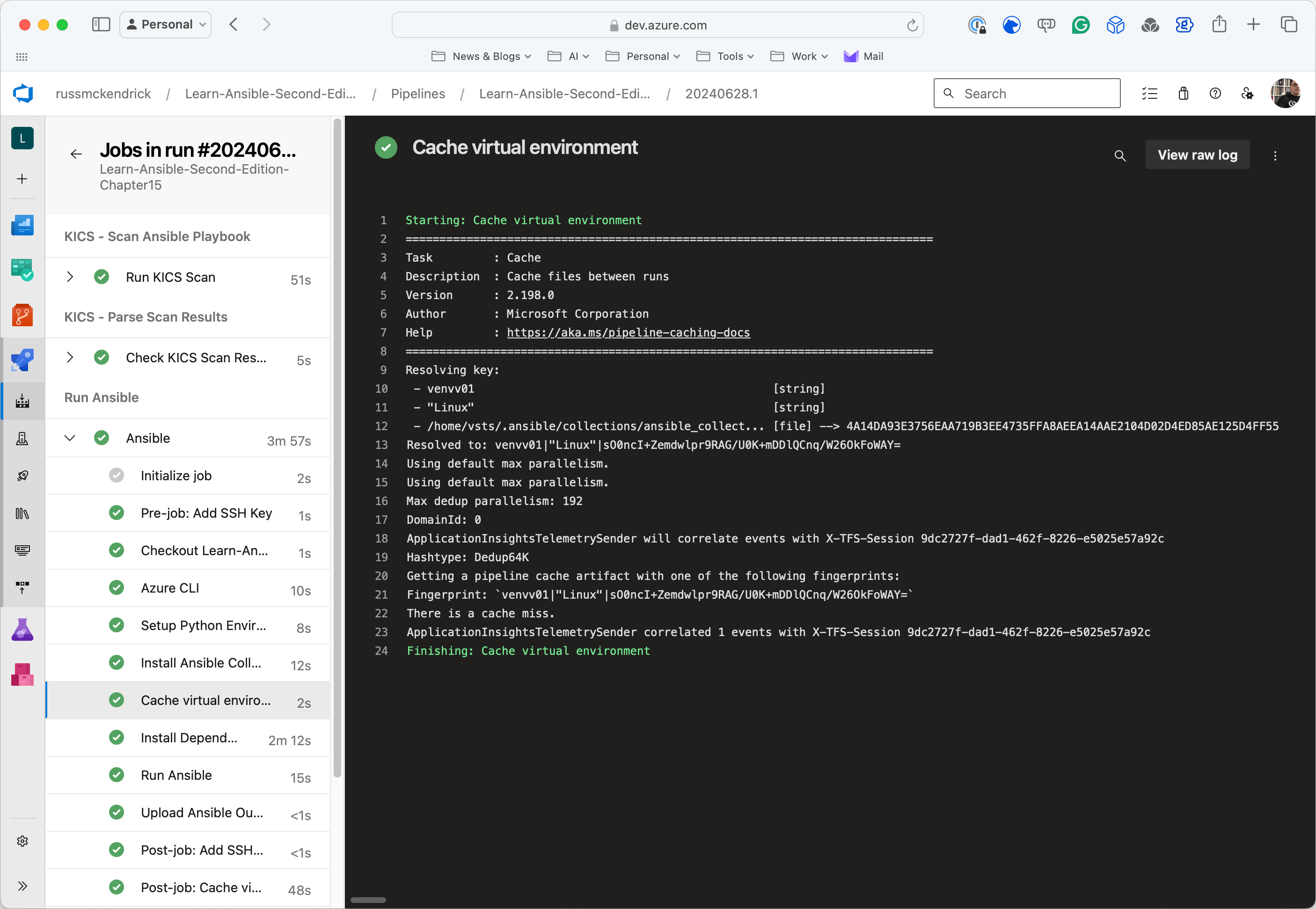 The introduction of caching in our Azure DevOps Ansible pipeline has significantly improved its efficiency and reduced execution time. By implementing the Cache@2