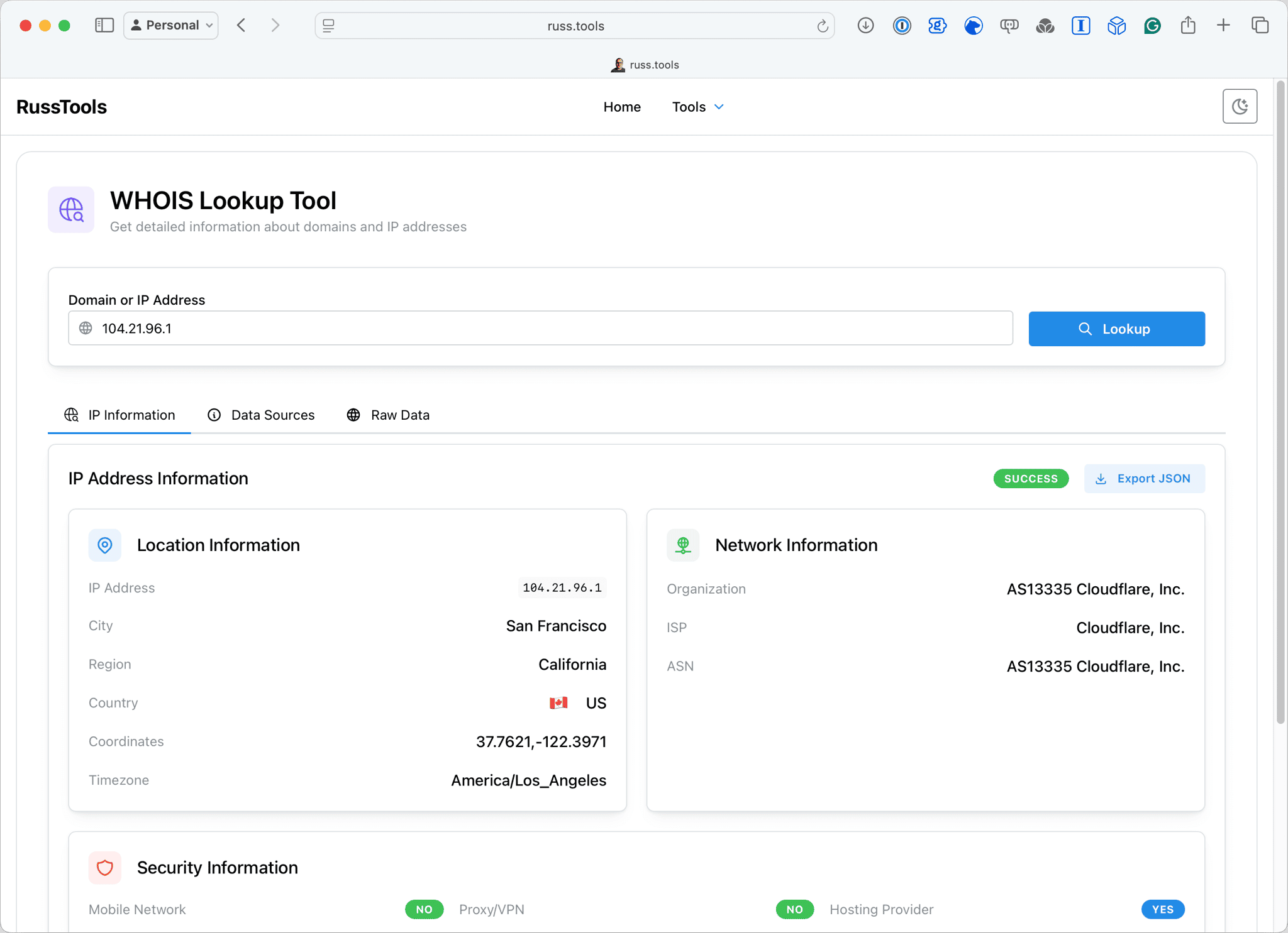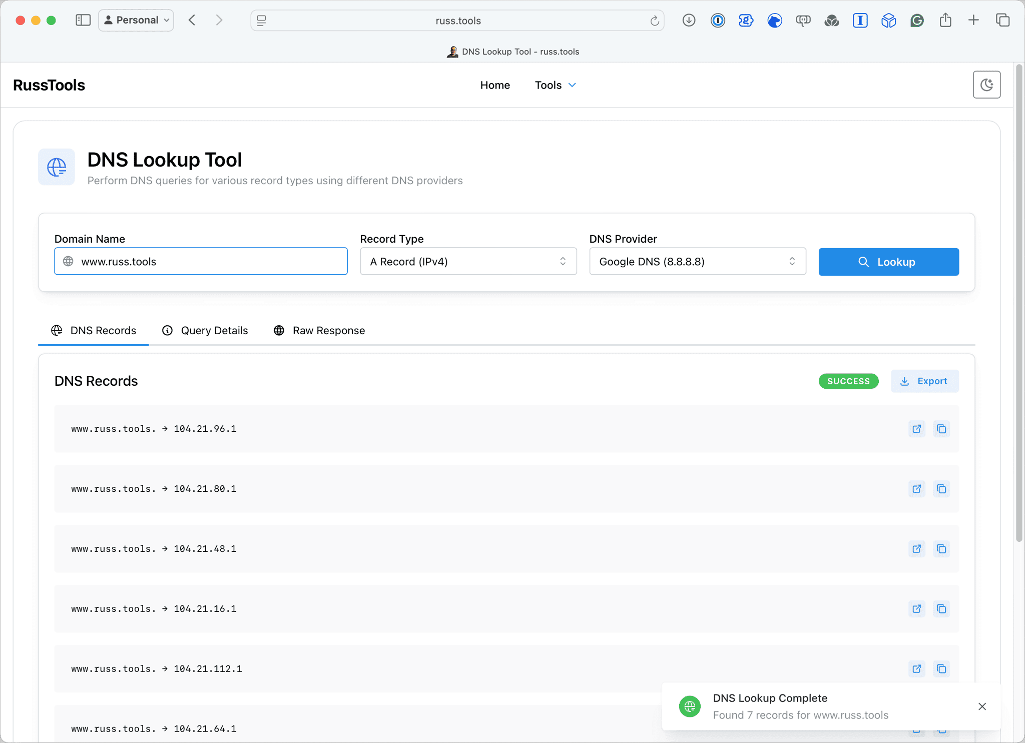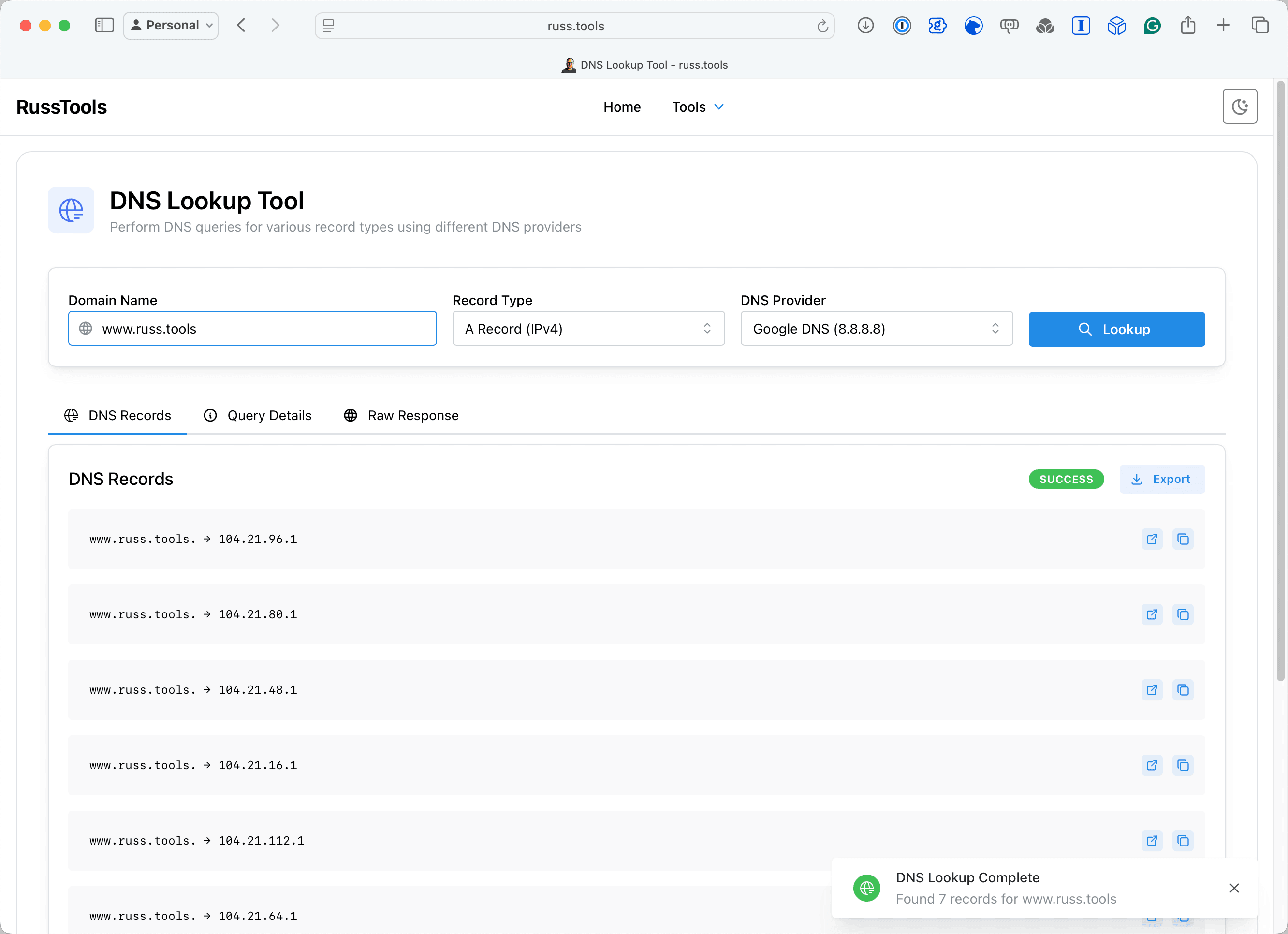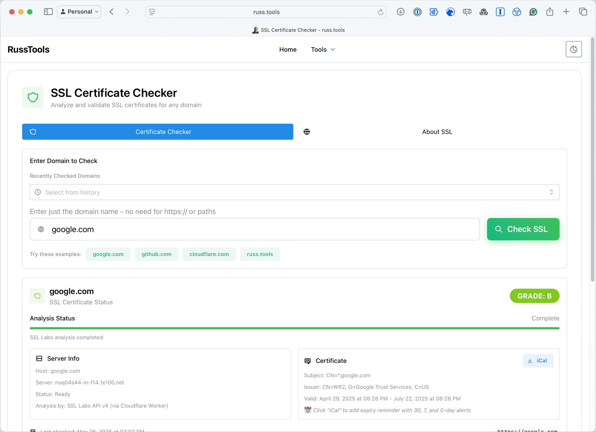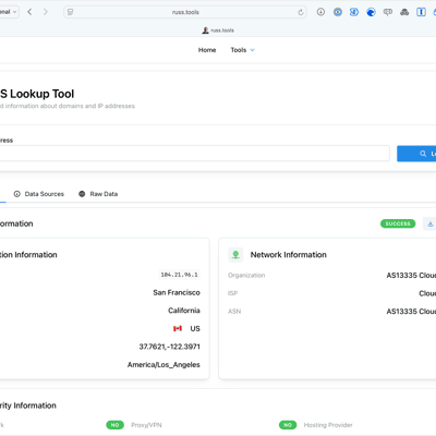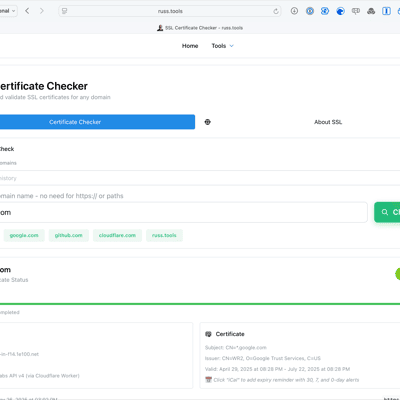 Colour me impressed - so with a long weekend I decided to add some more tools: first an SSL Certificate Checker, then a DNS Lookup Tool, and then a WHOIS Lookup Tool.